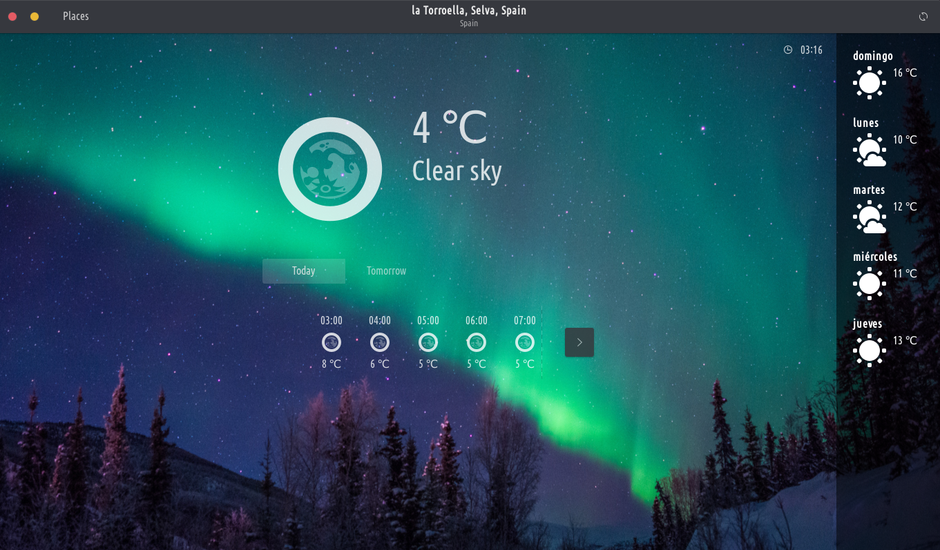 Another GNOME app – seems completely trade-free. When I tested it, it didn’t used my location, but I had to type in a locations, so I guess it doesn’t collect the location data.