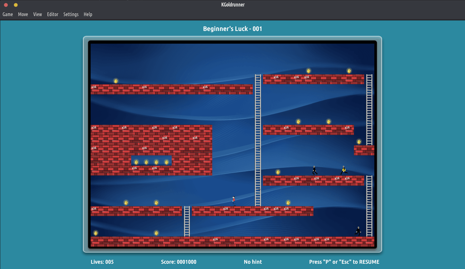 KGoldrunner is an action game where the hero runs through a maze, climbs stairs, dig holes and dodges enemies in order to collect all the gold nuggets and escape to the next level. Your enemies are also after the gold. Worse still, they are after you!.
