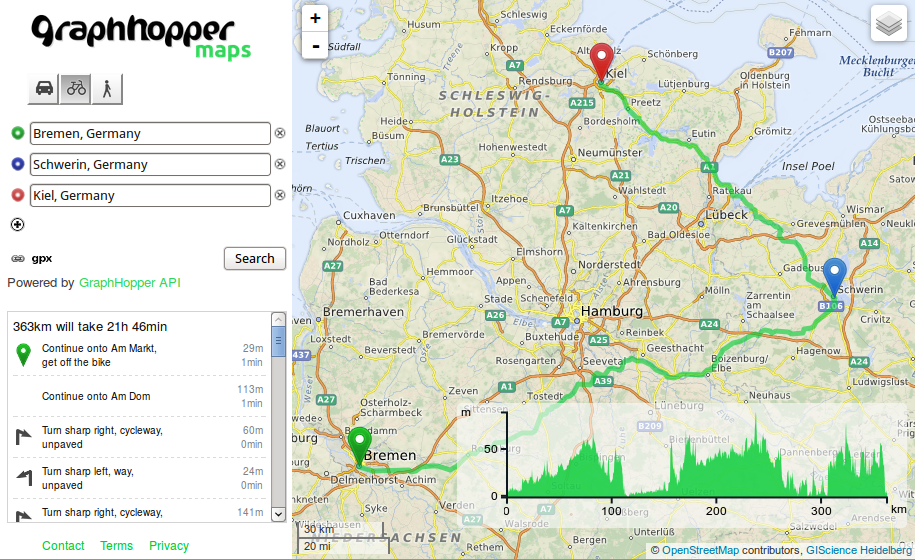GraphHopper is an open-source routing library and server written in Java and provides a web interface called GraphHopper Maps. As well as a routing API over HTTP. It runs on the server, desktop, Android, iOS or Raspberry Pi. By default OpenStreetMap data for the road network and elevation data from the Shuttle Radar Topography Mission is used.