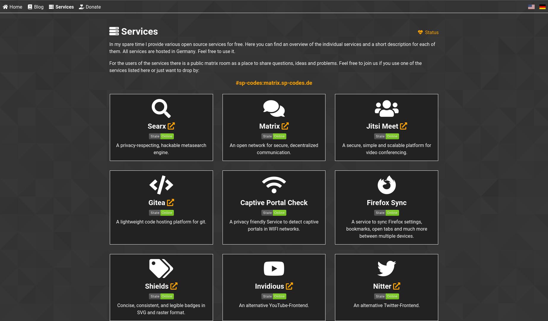 In my spare time I provide various open source services for free. Here you can find an overview of the individual services and a short description for each of them. All services are hosted in Germany. Feel free to use it.