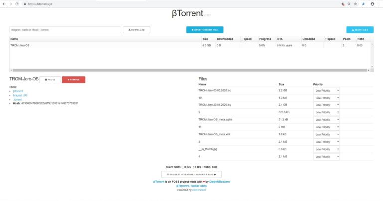 βTorrent: Browser WebTorrent Client service Features Informative GUI with easy sharing options Downloading from an…