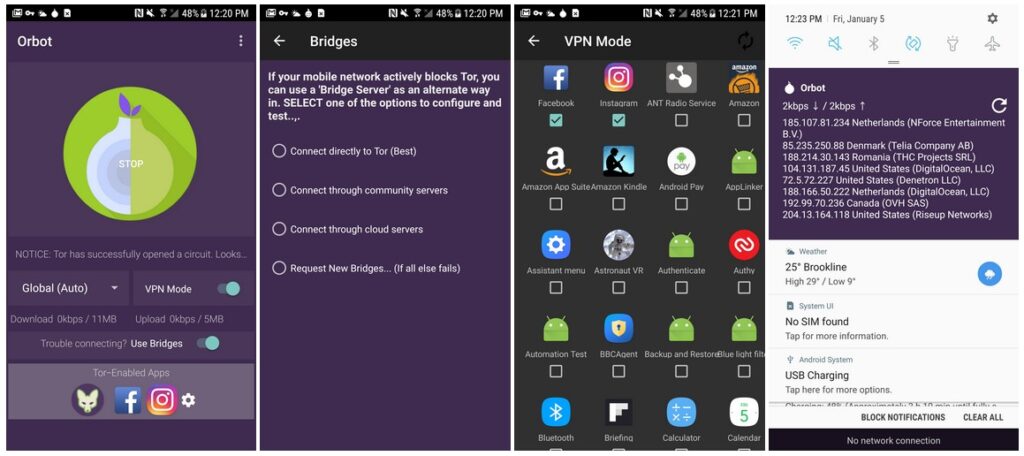 Orbot is a freely licensed open-source application developed for the Android platform. It acts as a front-end for the Tor binary application, while also providing a secure HTTP Proxy for connecting web browsers and other HTTP client applications into the Tor SOCKS interface.