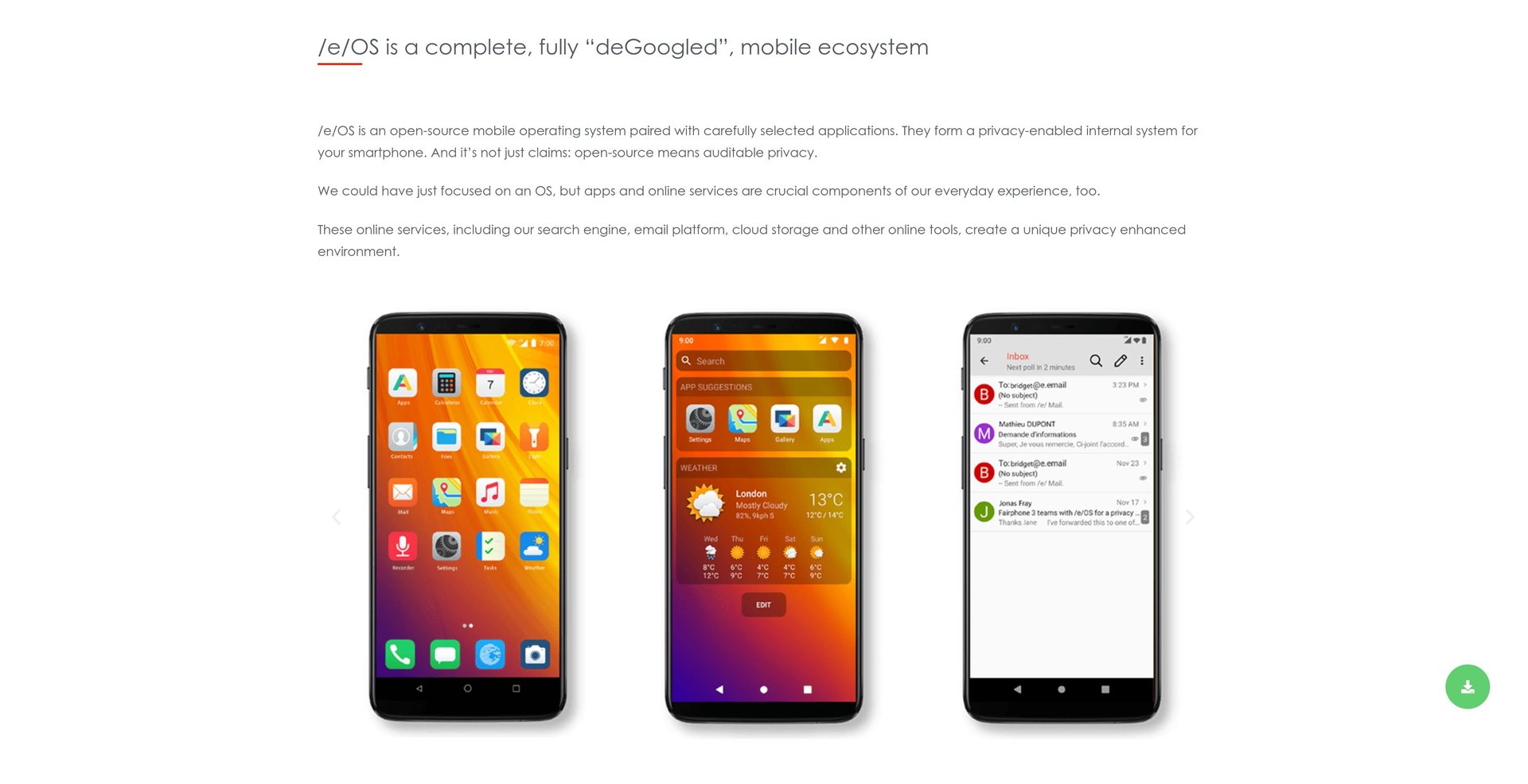 /e/ (formerly Eelo) is a free and open-source Android-based mobile operating system and associated online services. The operating system is a fork of LineageOS and Android. The custom firmware is developed by the /e/ Foundation, which was founded by French entrepreneur Gaël Duval. /e/ is presented as privacy software that does not contain proprietary Google apps or services, and challenges the public to “find any parts of the system or default applications that are still leaking data to Google.