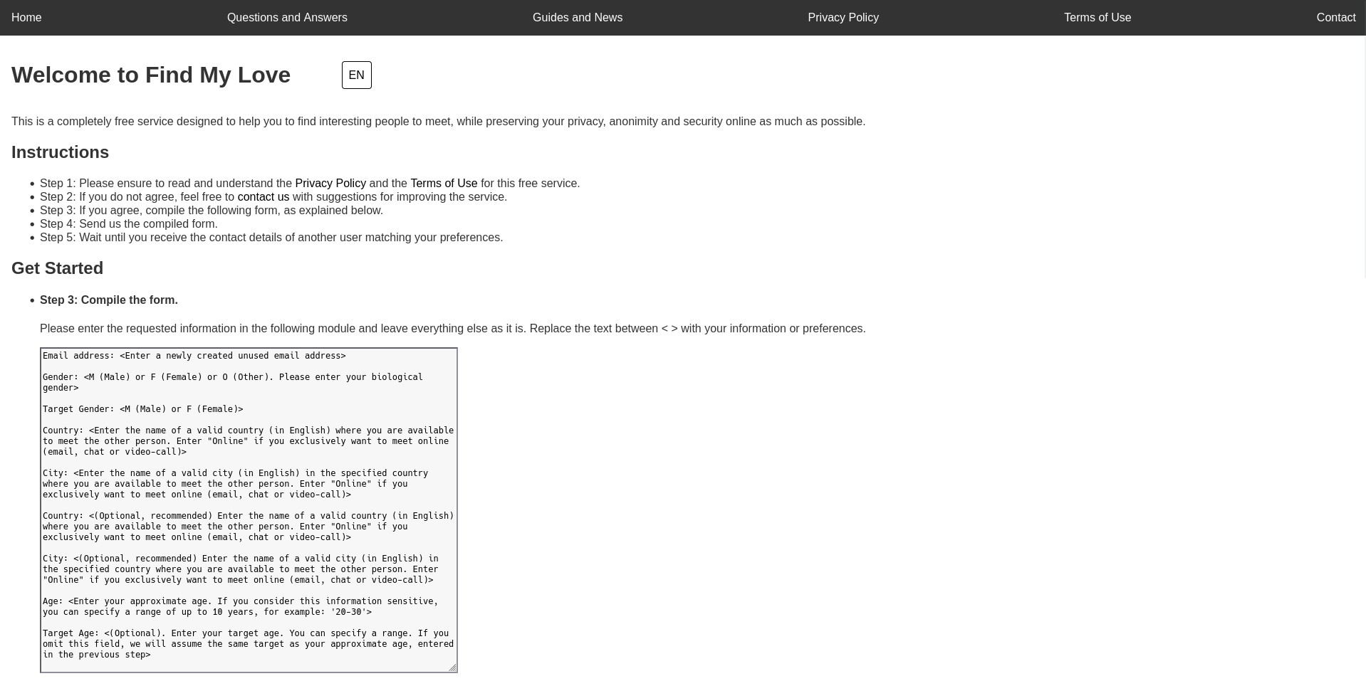 Find Your Love: Best Private Website! https://fml.srht.site (or equivalently https://securemail.srht.site) Hosted on SourceHut open-source platform! Private by Design. No data collection. No registration. Zero ads/tracking. Completely free. Anonymous. No Javascript. Privacy-conscious staff. End-to-end encryption for secure conversations. Independently maintained. Simple, easy to use, and available on all platforms. No downloads required.