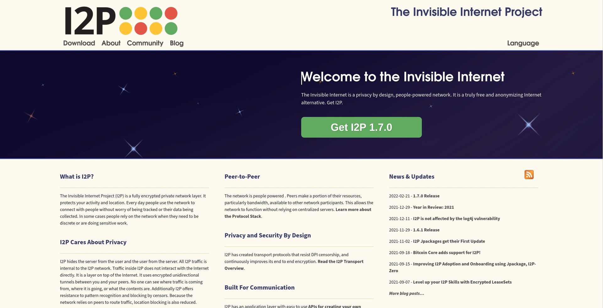 The Invisible Internet Project (I2P) is an anonymous network layer (implemented as a mix network) that allows for censorship-resistant, peer-to-peer communication. Anonymous connections are achieved by encrypting the user’s traffic (by using end-to-end encryption), and sending it through a volunteer-run network of roughly 55,000 computers distributed around the world. Given the high number of possible paths the traffic can transit, a third party watching a full connection is unlikely. The software that implements this layer is called an “I2P router”, and a computer running I2P is called an “I2P node”. I2P is free and open sourced, and is published under multiple licenses.