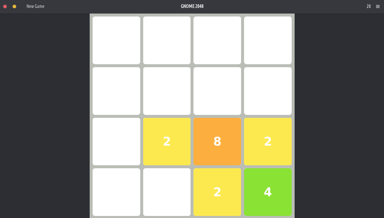 Play the highly addictive 2048 game. GNOME 2048 is a clone of the popular single-player puzzle game. Gameplay consists of joining numbers in a grid and obtain the 2048 tile.