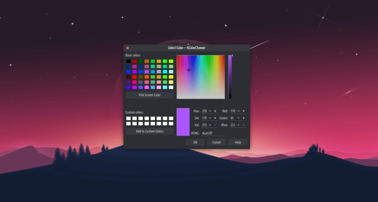 KColorChooser è uno strumento per la tavolozza dei colori, utilizzato per mescolare i colori e creare tavolozze di colori personalizzate….