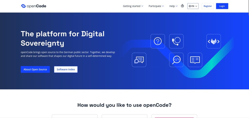 Random openCodeopenCode brings open source to the German public sector. Together, we develop and share our software that shapes our digital future in a self-determined way. ຖິ້ມໂດຍ Dice!