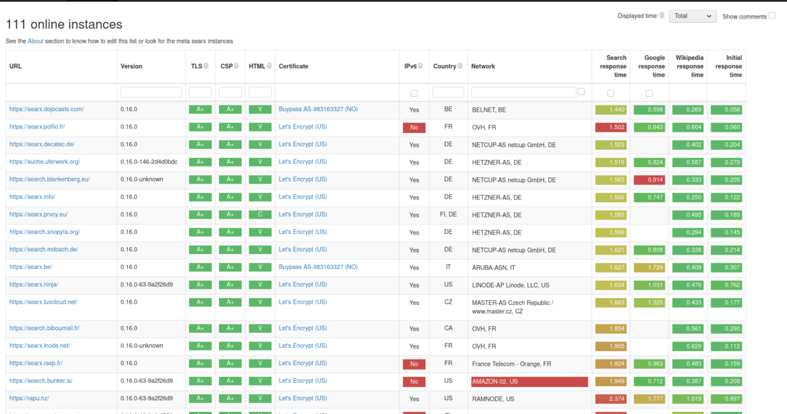 prekės / paslaugos Multimedija „Searx.space“ 5.0 5,0 iš 5 žvaigždučių (pagal 1 apžvalgą) Puikiai100%Labai gerai0%Vidutinis0%Vargšas0%Siaubinga0% Autorius„tradefree_azrarp“2020-05-14 This website shows the searx public instances. It is updated every 24 hours, except the Skaityti daugiau