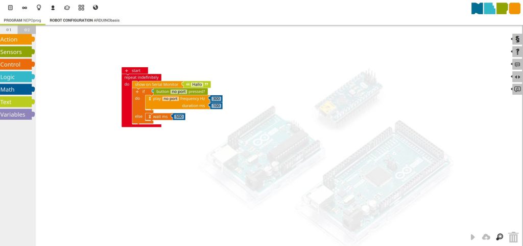 The “Open Roberta® Lab” is a freely available graphical programming platform that makes learning to program easy. On the open source platform of the “Roberta® – Learning with Robots” initiative of Fraunhofer IAIS, even novices create their first programs in no time at all by “drag and drop”. The special feature: In the Open Roberta Lab, real robots and microcontrollers come to life. “Hands-on”, young programmers learn the basics of coding and playfully discover the countless possibilities that the world of technology and science has in store for them.