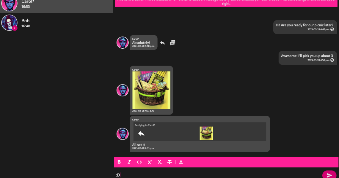 bunuri/servicii Software și hardware berty.tech 5 5,0 din 5 stele (pe baza a 1 recenzie) Excelent100%Foarte bine0%In medie0%slab0%Teribil0% Detrom05.11.2023 Cu un protocol de criptare puternic (E2EE), comunicarea cu Berty este cât se poate de anonimă Citeste mai mult
