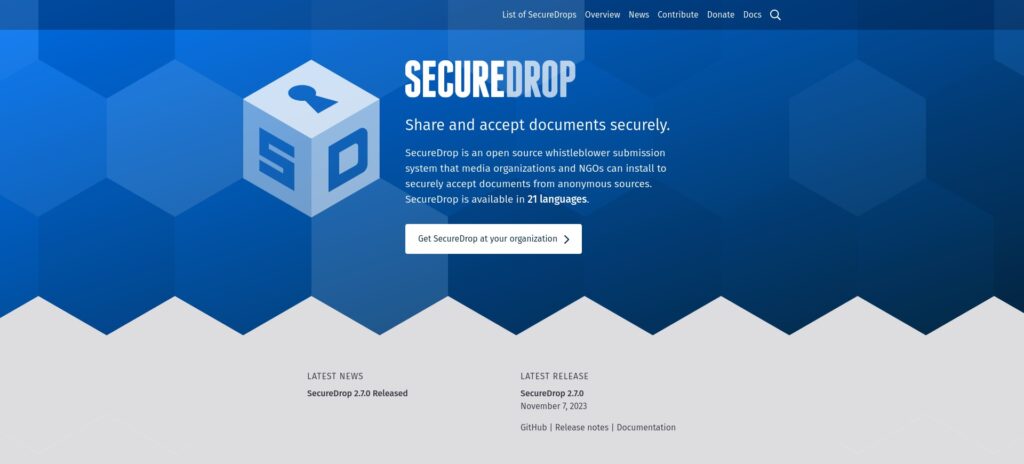 SecureDrop is an open-source whistleblower submission system that media organizations can use to securely accept documents from, and communicate with anonymous sources. It was originally created by the late Aaron Swartz and is currently managed by the Freedom of the Press Foundation.