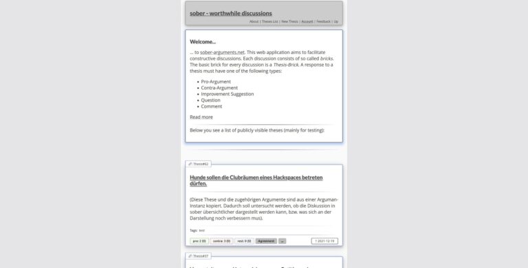 Welcome… … to sober-arguments.net. This web application aims to facilitate constructive discussions. Each discussion consists…